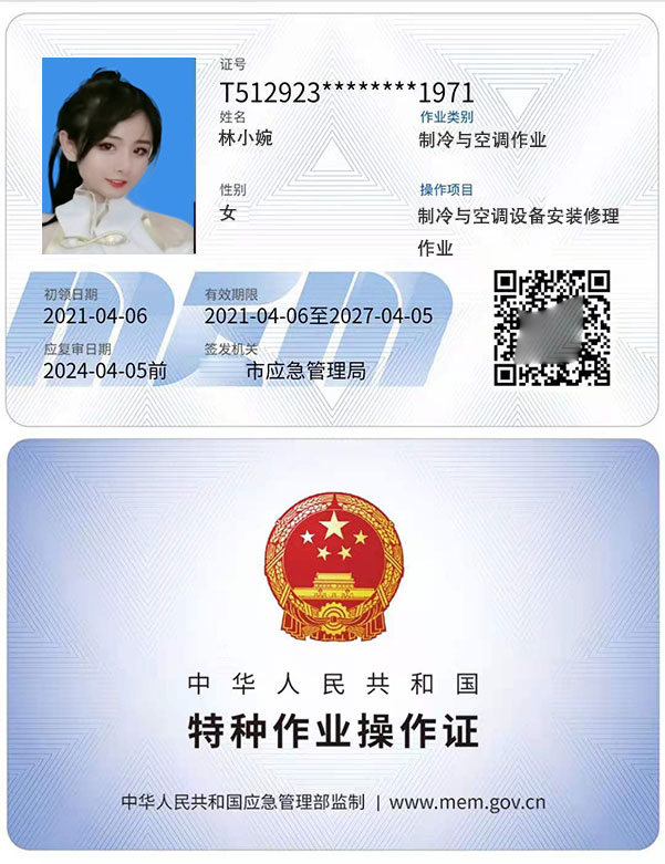 《特種作業證》特種上崗操作證由應急管理部 頒發,哪里發的都可以通用的,以前叫IC卡,現在叫感應卡,3年年審一次,和身份證一樣的,只要你有專用的讀卡機,就能夠讀出卡里面的資料,但是這個讀卡機國家只給有資質的單位,比如學校,應急管理廳等才有,這證不管你拿去哪里,只要有讀卡機的地方都可以讀卡與年審,查詢方式也可以上發證部門應急管理廳的網站,上輸入證號查詢的,也可以用微信掃IC上面的二維碼查詢。