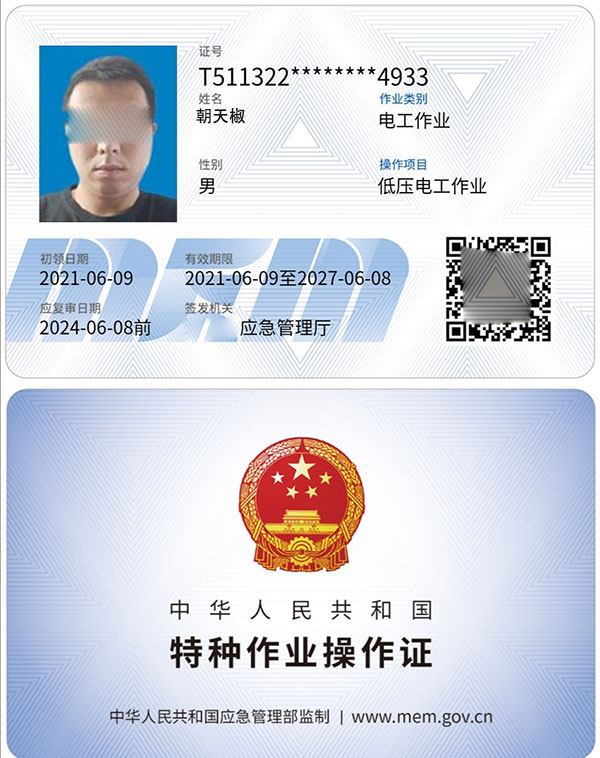 《特種作業證》特種上崗操作證由應急管理部   頒發,哪里發的都可以通用的,以前叫IC卡,現在叫感應卡,3年年審一次,和身份證一樣的,只要你有專用的讀卡機,就能夠讀出卡里面的資料,但是這個讀卡機國家只給有資質的單位,比如學校,應急管理廳等才有,這證不管你拿去哪里,只要有讀卡機的地方都可以讀卡與年審,查詢方式也可以上發證部門應急管理廳的網站,上輸入證號查詢的,也可以用微信掃IC上面的二維碼查詢。