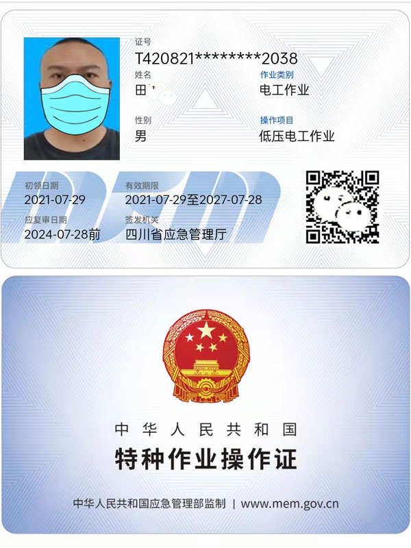 電工證屬于特種作業操作證的一種,也是常用的電工證。一般初入行的人員都需要考取低壓電工證。它是國家應急廳所發的,現在已經全面使用IC卡的形式,上崗時必須隨身攜帶。因為應急管理廳會不定時到電工作業場所進行檢查。一般檢查的方式是讀卡機查詢方法。一般地區的低壓電工證能從讀卡機讀取到信息,也能在國網查詢到信息。