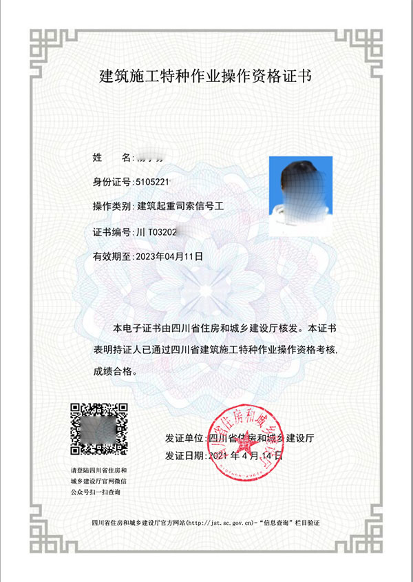 建筑起重司索信號(hào)工特種作業(yè)操作資格證書建設(shè)廳頒發(fā)的