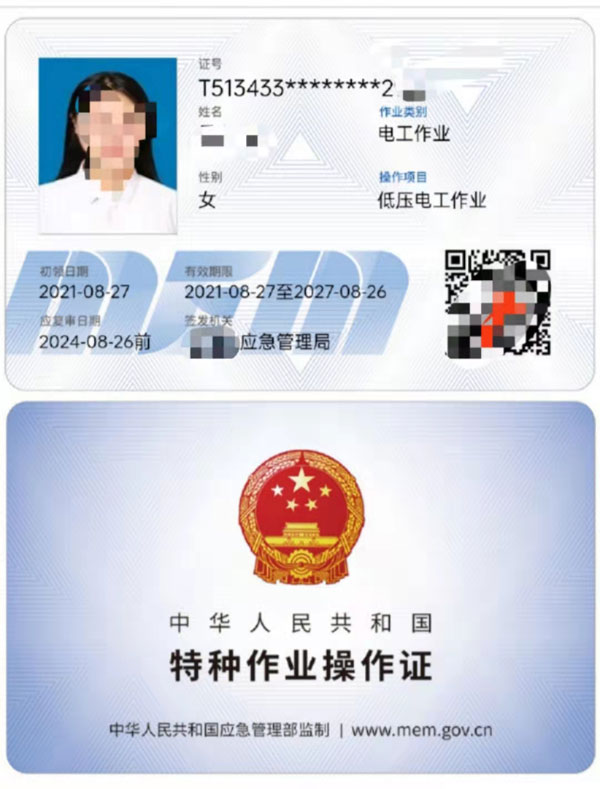 應急管理局特種作業證書樣板