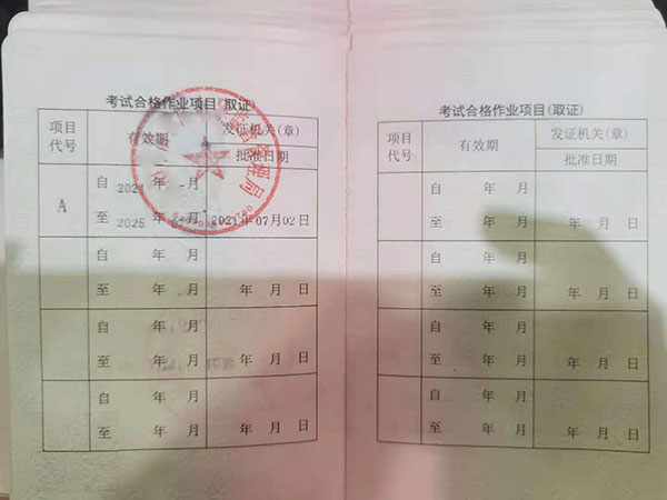 特種設備安全管理A證證書展示: