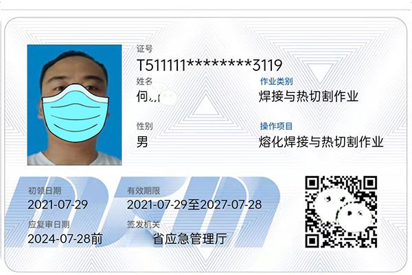 《特種作業證書樣板展示》