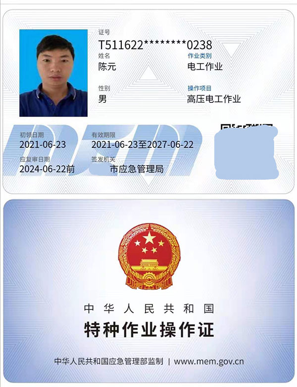 低壓電工證,高壓電工證,熔化焊接與熱切割作業,焊工證,電力電纜,繼電保護,電氣試驗,防爆電器作業,高處安裝維護拆除作業,登高架設作業,制冷與空凋設備運行操作作業,制冷與空凋設備安裝修理作業,施工吊裝作業,施工挖裝作業,危化品負責人/管理人員,危化品從業人員上崗證;