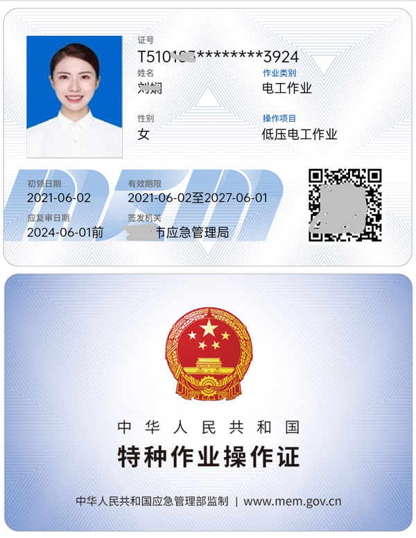 低壓電工操作證,高壓電工操作證,熔化焊接與熱切割作業,焊工操作證,電力電纜,繼電保護,電氣試驗,防爆電器作業,高處安裝維護拆除作業,登高架設作業,制冷與空凋設備運行操作作業,制冷與空凋設備安裝修理作業,施工吊裝作業,施工挖裝作業,危化品負責人/管理人員,危化品從業人員上崗證,新訓,三年復審一次;